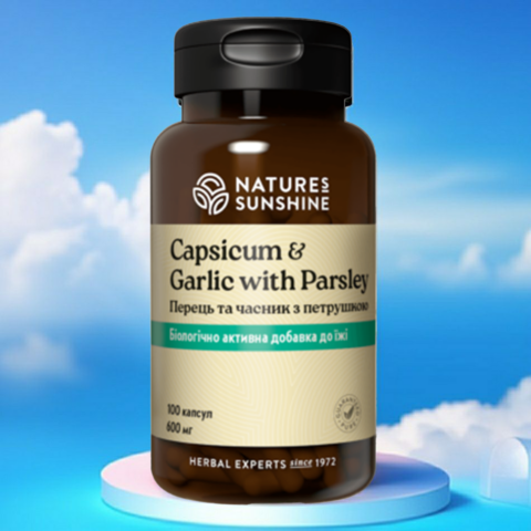 Именно с этого жгучего красного овоща, входящего в состав Capsicum & Garlic with Parsley (Перец, Чеснок, Петрушка) началась история производства капсулированных препаратов с биоактивными веществами компании Nature`s Sunshine Products, основанной Джином Хьюзом.